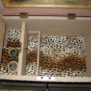 Eigentlich wollte ich keine Truhe mehr bauen, doch als ich im Schuppen diese alte Kiste fand, überkam mich wieder eine Idee und baute dann diese mittelalterliche Truhe. Innen im Deckel ein kleines Gemälte, eine Fach mit Kerzenhalter und Feuerzeug und ein Geheimfach.Eine Spieluhr kann man von Außen bedienen. Damit sie ihren festen Platz bekommt, habe ich noch einen Tisch dazu gebaut.